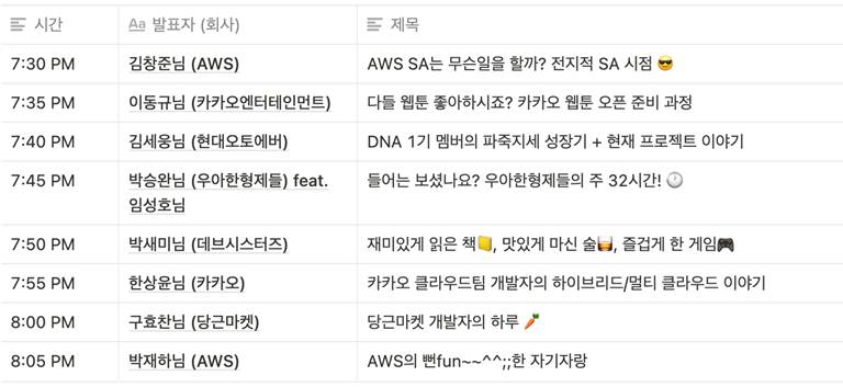 현업에서 AWS를 활용중이며 더 많이 알고 싶은 직장인들의 대외활동(?) 이라고 생각하시면 될 것 같습니다.