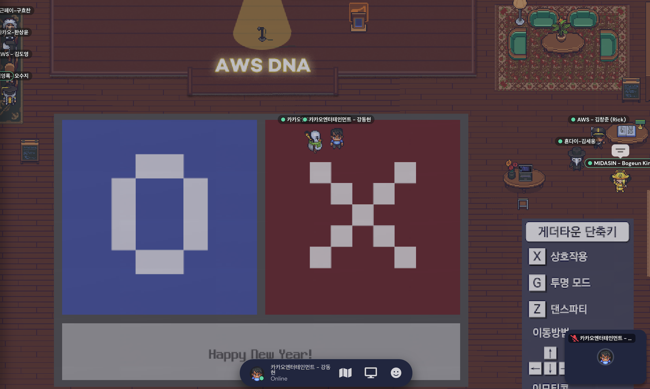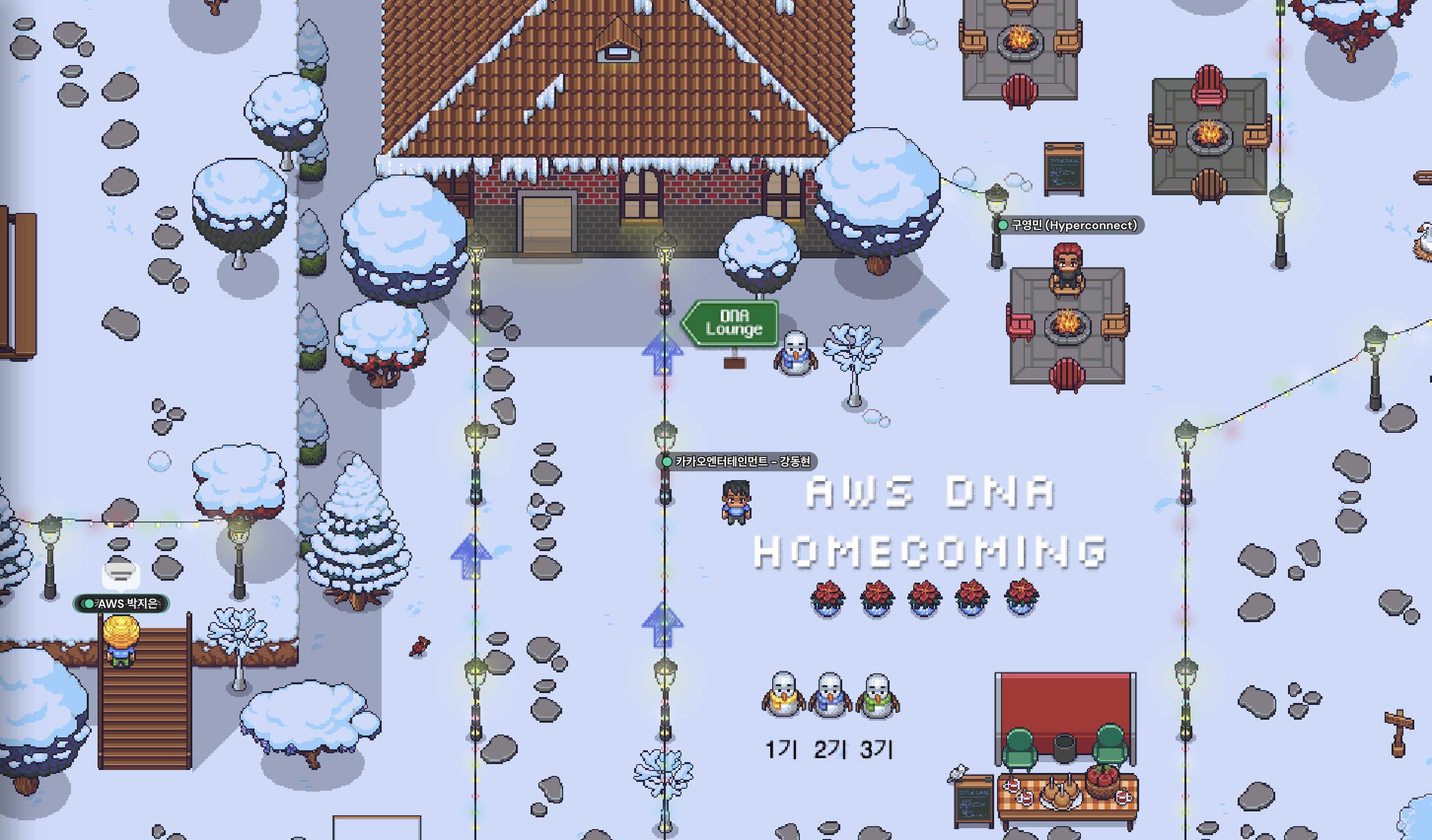 오픈 마이크 이후에는 자유롭게 맵을 돌아다니며 다른 DNA 멤버분들과 어울리며 네트워킹하는 시간을 가졌어요. 처음에 부끄러워서 쭈뼛거렸는데, 같은 회사 분이 발견하고 무리에 불러주신(?) 이후로는 이곳 저곳 다니며 다양한 멤버분들과 이야기하며 즐거운 시간을 보냈습니다..!