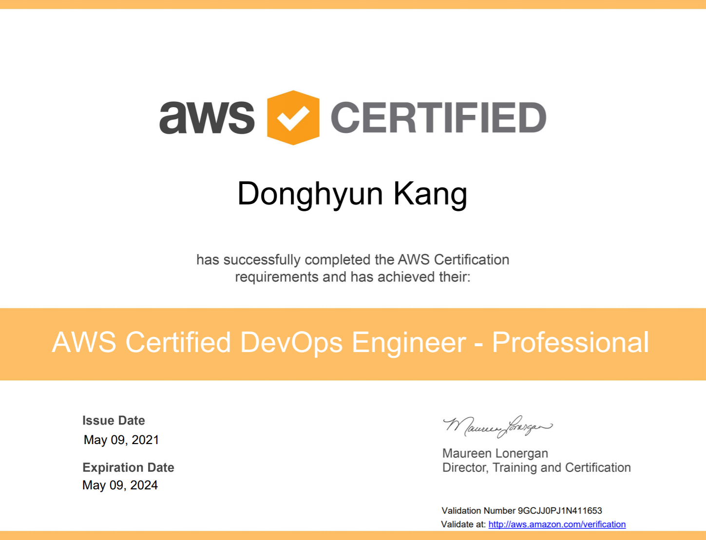 AWS Certified DevOps Engineer - Professional 자격증을 취득했습니다! 호우!